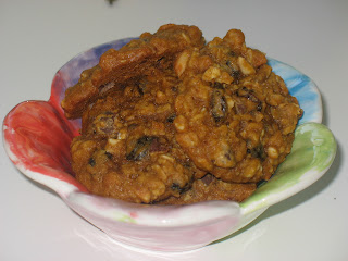 Dorie has one or two similar recipes to this one. The Chockablocks, however, had an ingredient that the others don't have; and it was a highly discussed ingredient. Molasses. Some bakers substituted honey, corn syrup, or Lyle's Golden Syrup. I stuck with molasses. I wanted to try this one as written. The other highly contested ingredient was shortening. I used butter flavored Crisco sticks. Honey roasted peanuts were my nuts of choice. And I stuck with raisins for the dried fruit. They were in the front of the cabinet. They won.